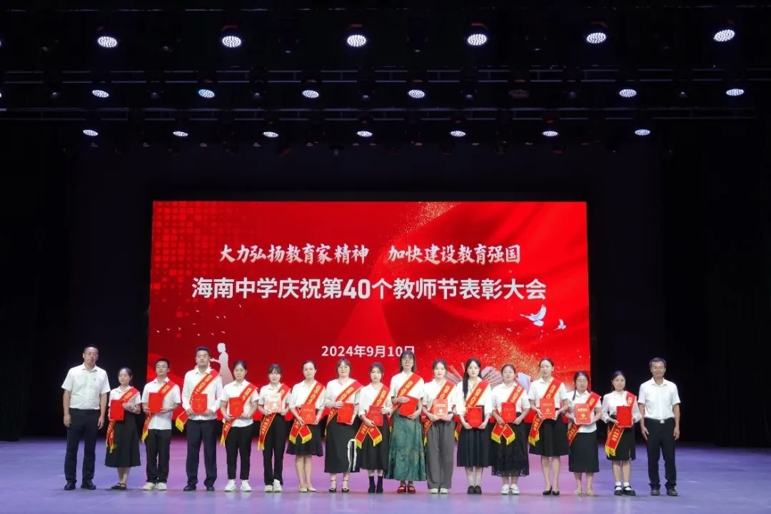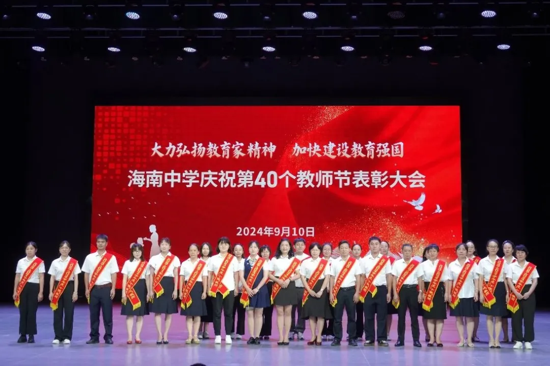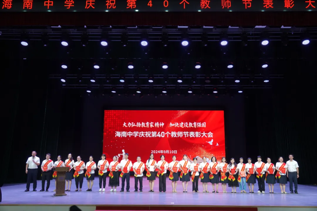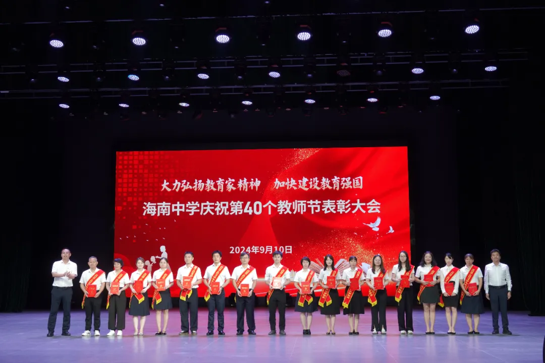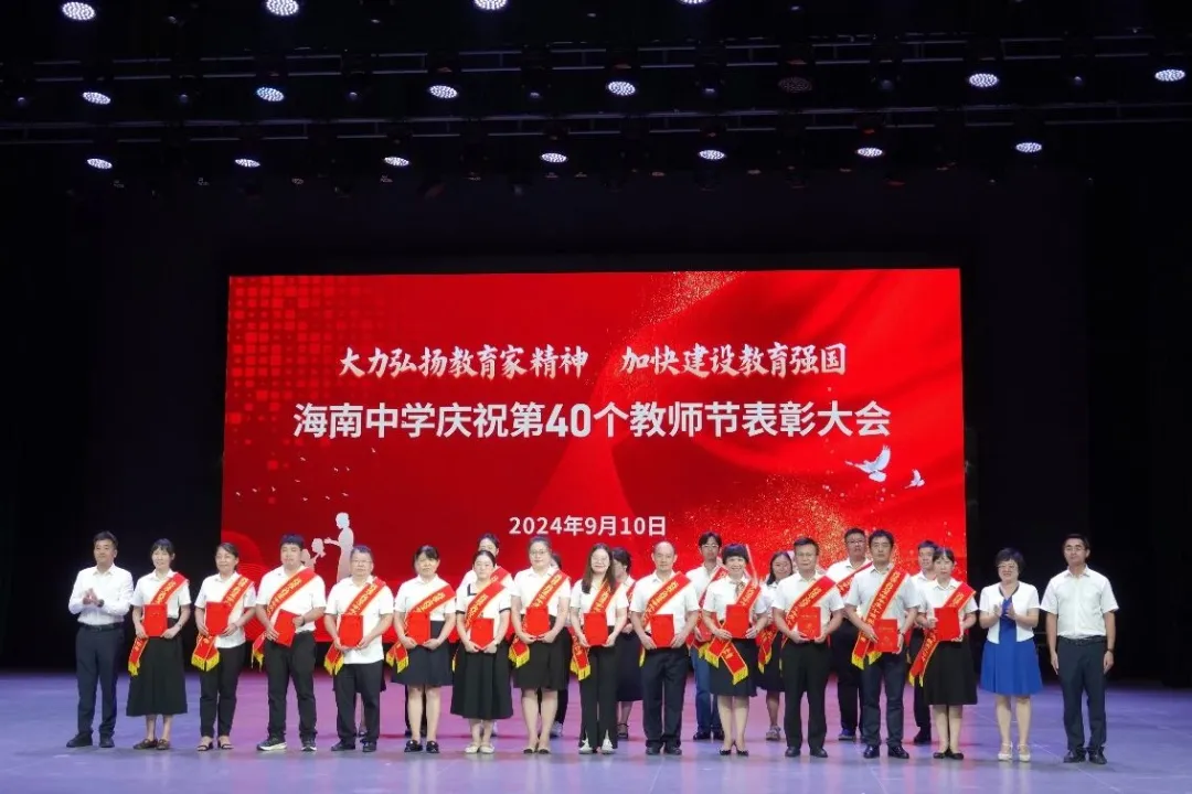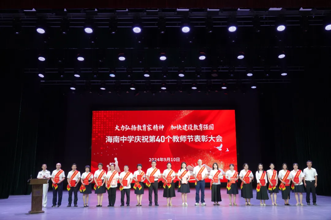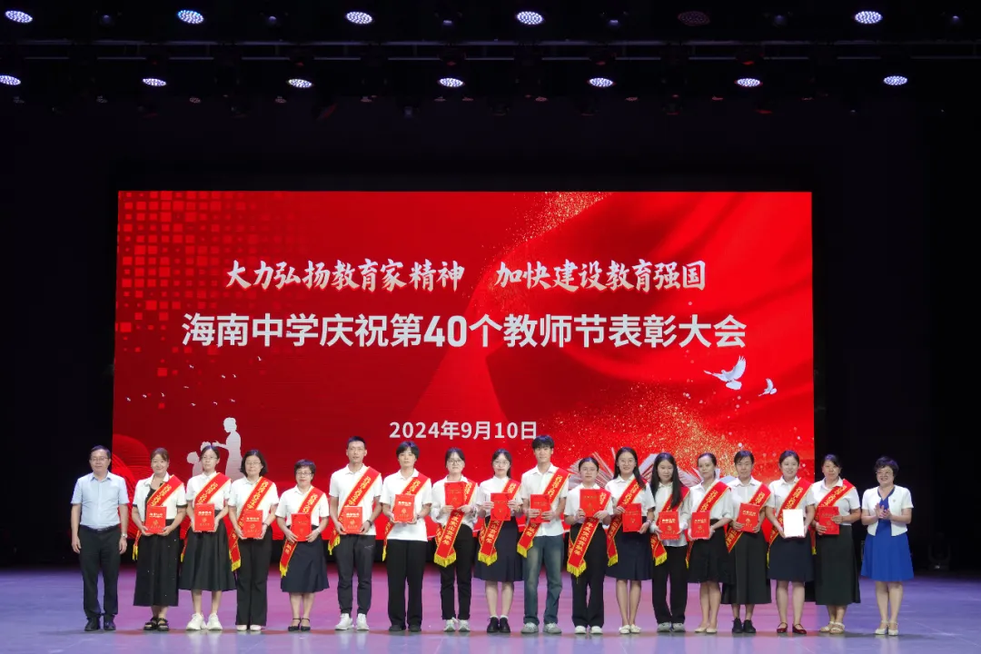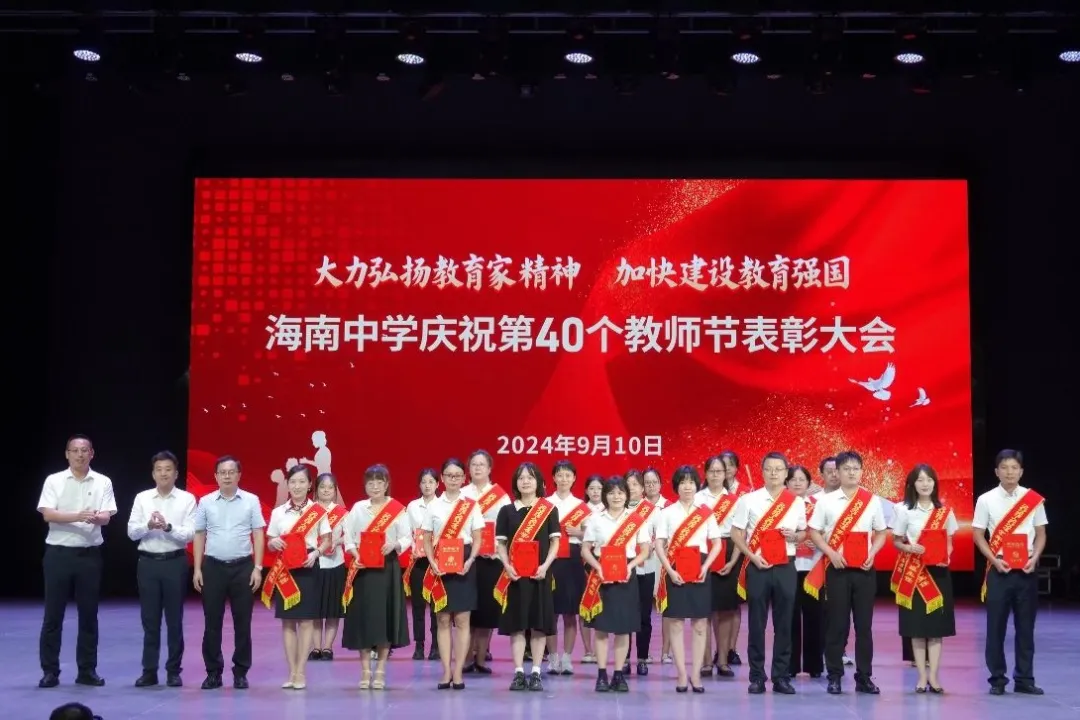 往昔峥嵘硕果芬芳,教坛新秀沐光成长,2024年9月10日晚7:30分,海南中学在艺术教育中心礼堂隆重举行庆祝第40个教师节表彰大会。