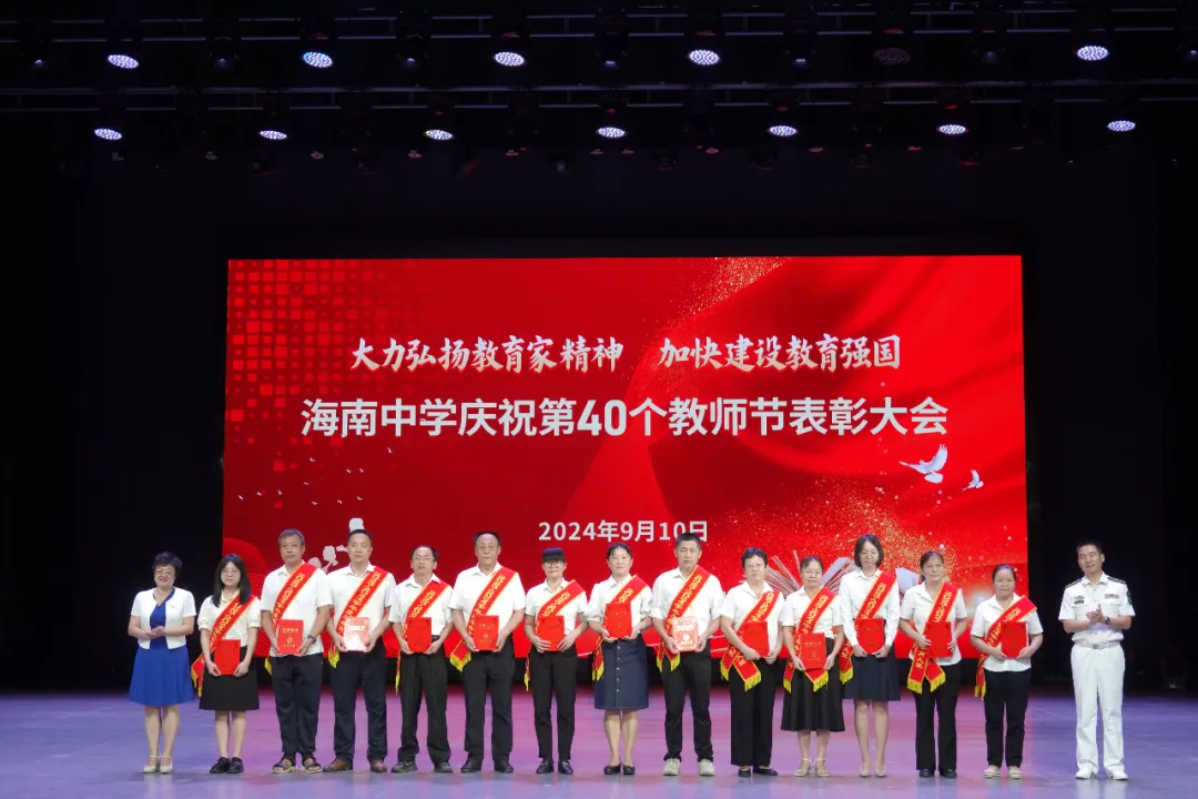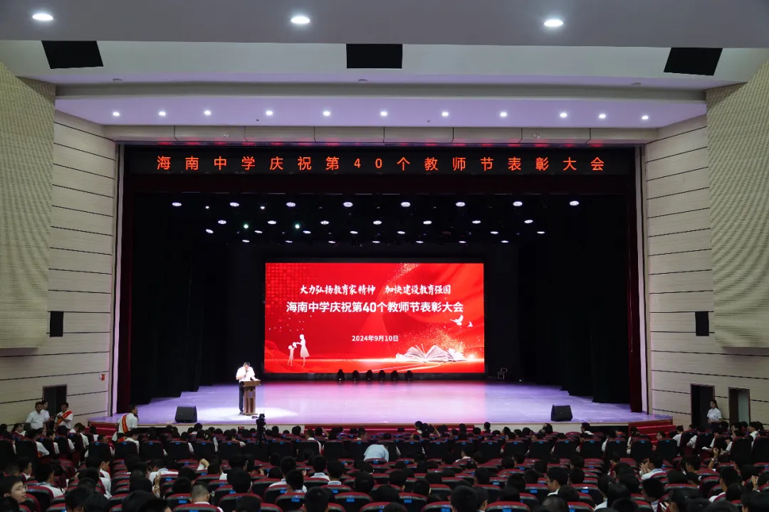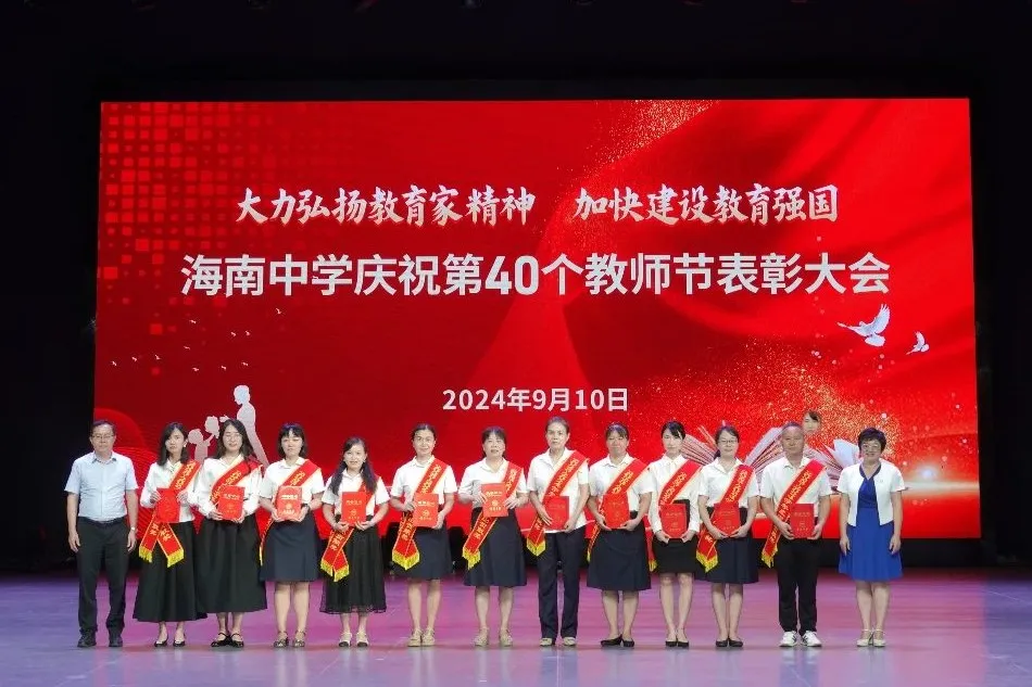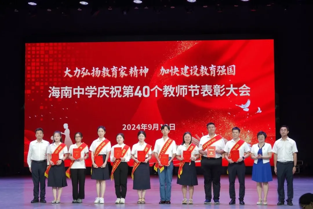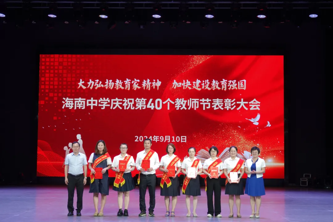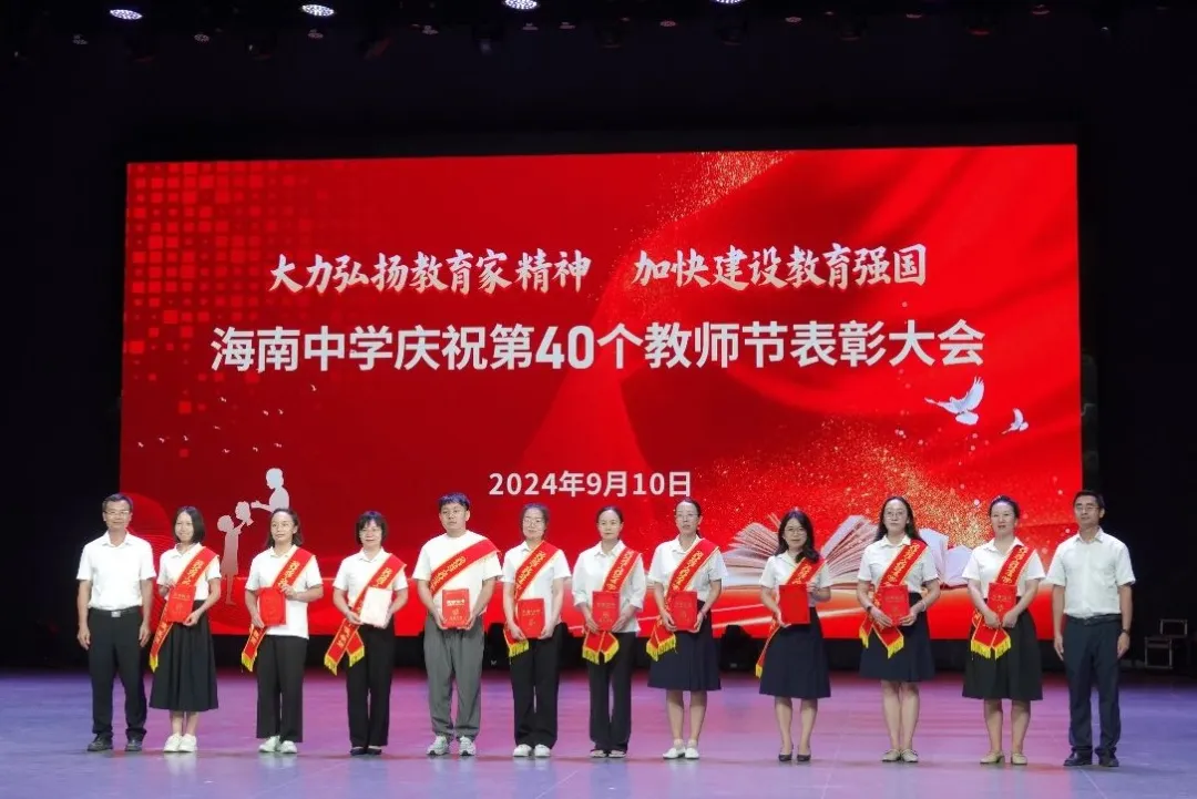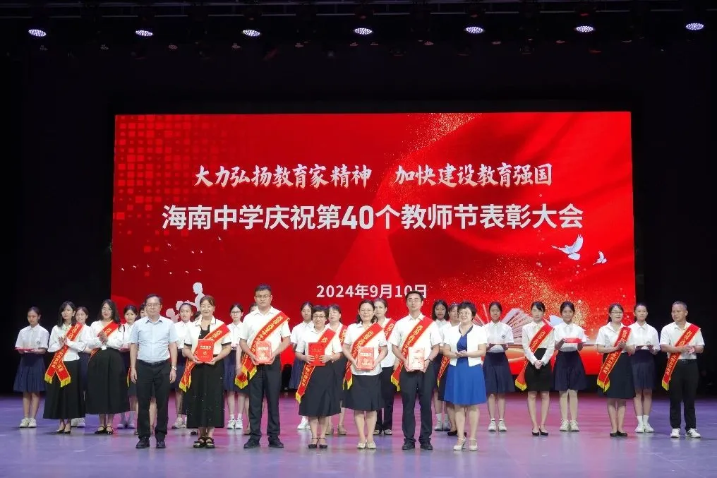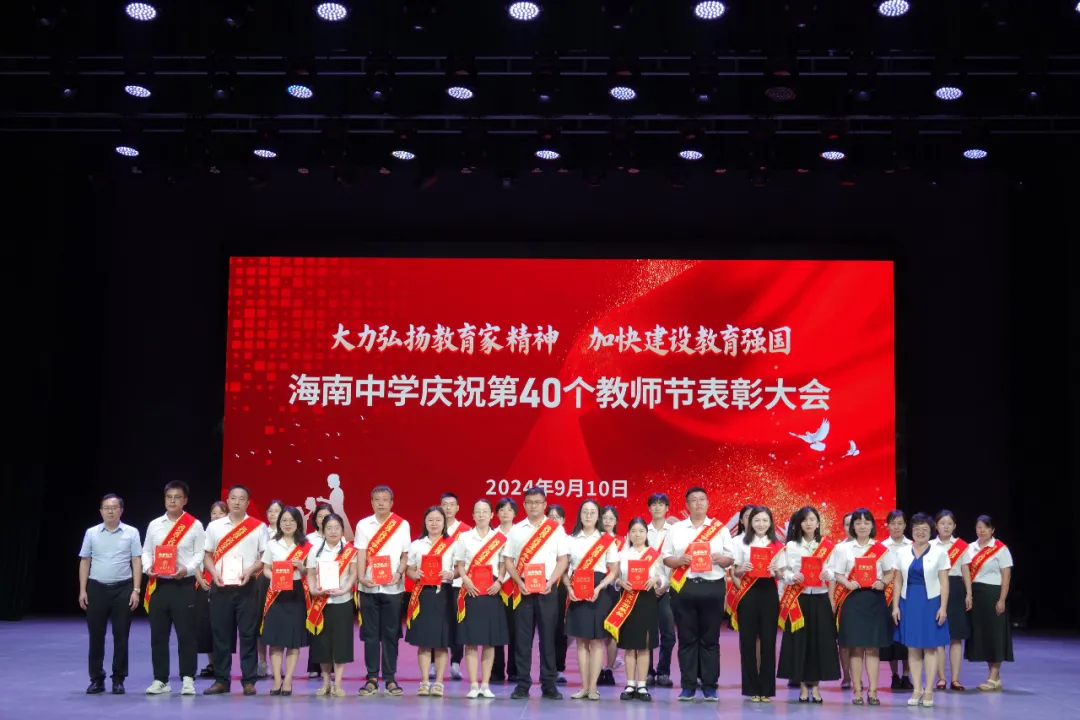 往昔峥嵘硕果芬芳,教坛新秀沐光成长,2024年9月10日晚7:30分,海南中学在艺术教育中心礼堂隆重举行庆祝第40个教师节表彰大会。